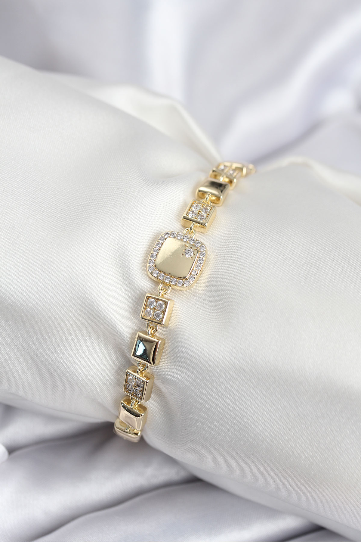 Pirinç VIP Seri Gold Renk Zirkon Taşlı Model Kadın Bileklik BB7940
