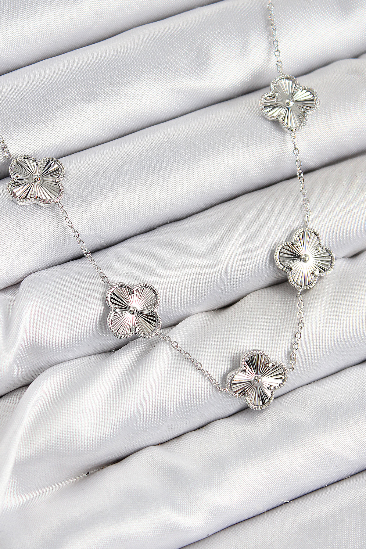 Pirinç VIP Yonca Model Gümüş Renk Kadın Kolye BKO10483