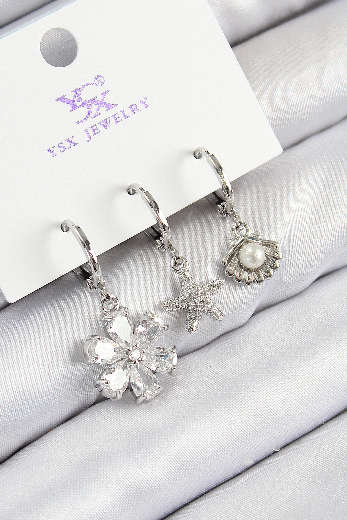 Pirinç Zirkon Taşlı 3’lü Çiçek Ve İstiridye Model Gümüş Renk Kadın Küpe BKP11129
