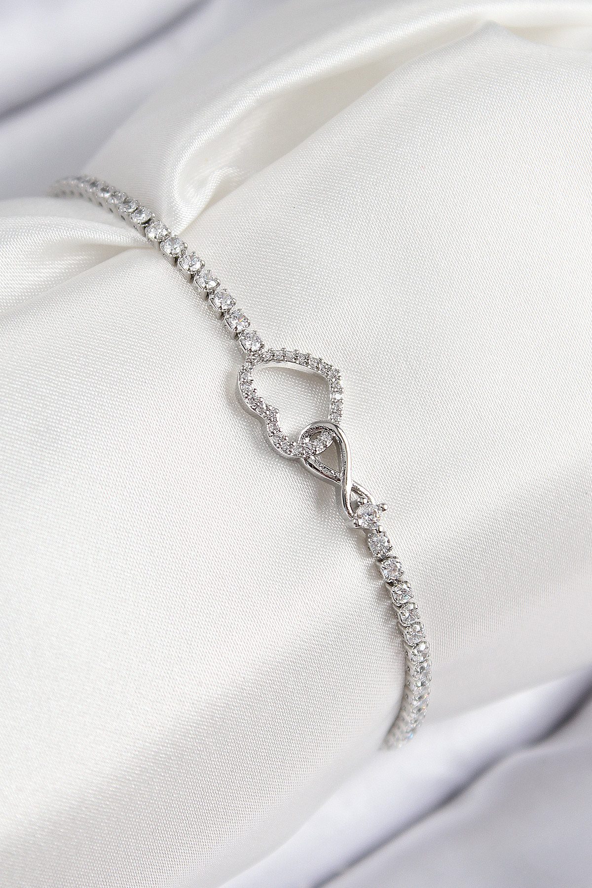 Pirinç Zirkon Taşlı Sonsuzluk Kalp Model Gümüş Renk Kadın Bileklik BB7692