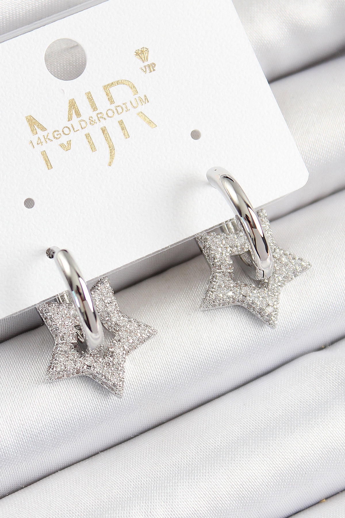 Pirinç Zirkon Taşlı Yıldız Figürlü Halka Model Gümüş Renk Kadın Küpe BKP10782